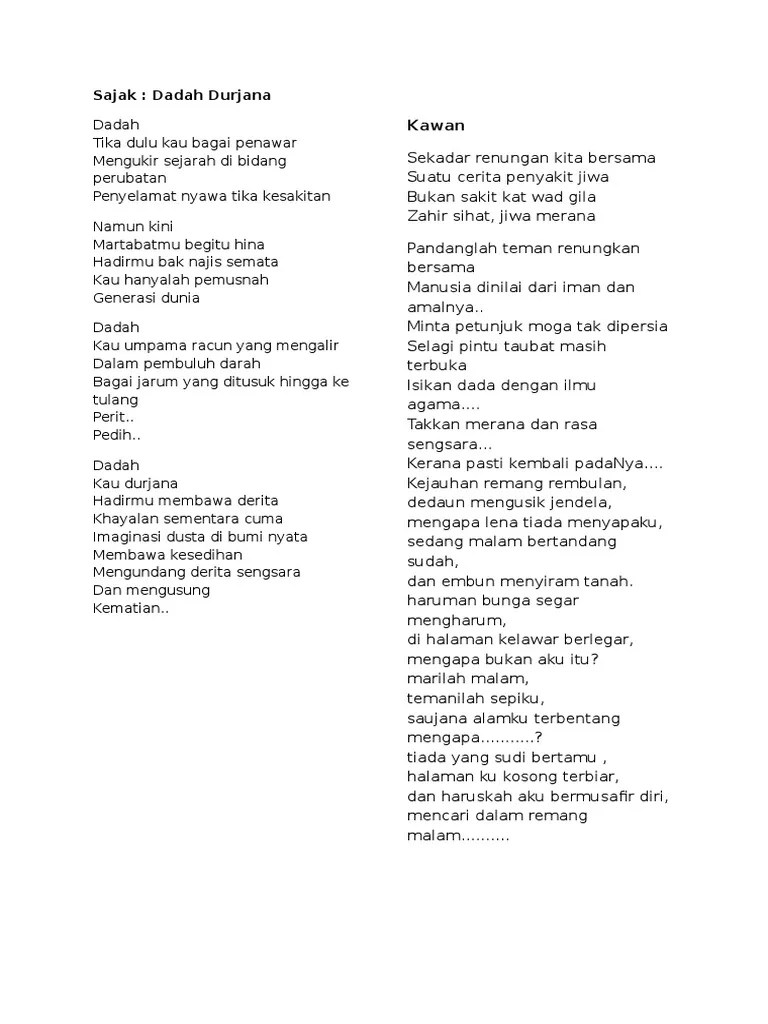 Berdiri megah di pentas wira Sumpah anak merdeka aku anak merdeka bangkit dari persada luka berdiri megah di. Merdekakah aku, di saat negara ku dilanda bencana, virus meragut nyawa, politikus terkinja melalak inginkan kuasa, menyanggah raja tanpa susila. Sajak merdeka yang ringkas ssawilmor.